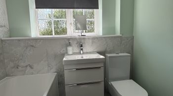 LVT (luxury vinyl tile) flooring was installed throughout the ground floor and finished in a herringbone style. We over boarded the old floor boards and applied self-levelling compound for that smooth finish required for this floor type.
